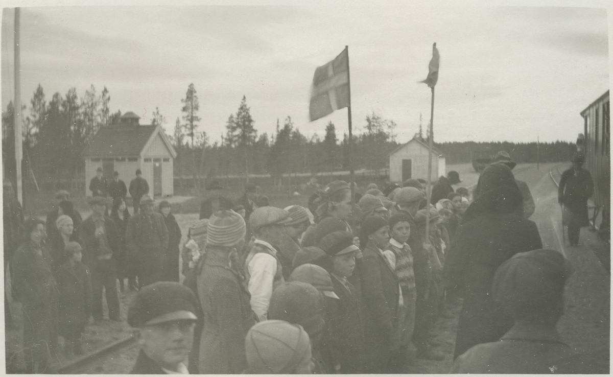 Skolbarn som uppvaktade med sång å Slagnäs bangård vid festtågets passerande den 30 september 1933 i anledning bandelens Arvidsjaur - Sorsele öppnande för allmän trafik.