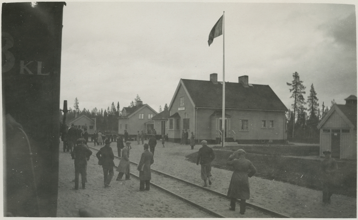 Slagnäs järnvägsstation den 30 september 1933 då festtåget passerade i anledning bandelens Arvidsjaur - Sorsele öppnande för allmän trafik.