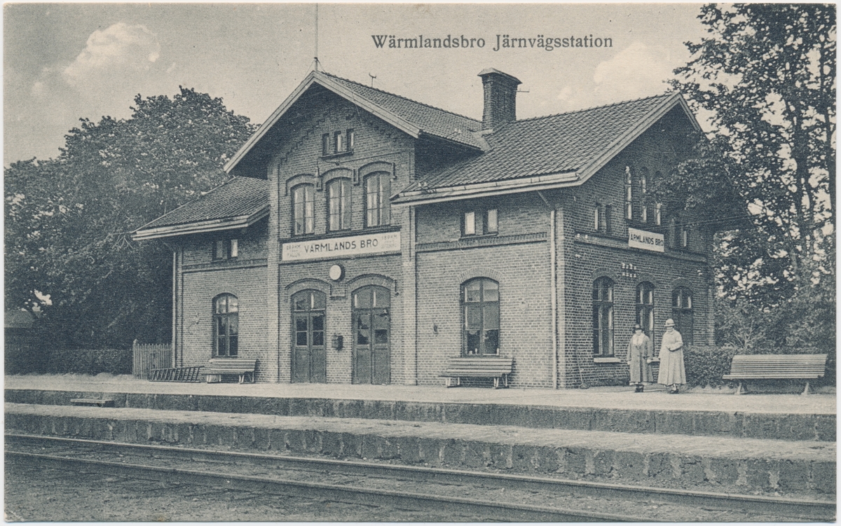 Wärmlandsbro station.Bergslagernas Järnväg, BJ. Banan öppnades 1879, elektrifiering 1940 och övergick till Statens Järnvägar, SJ 1948.