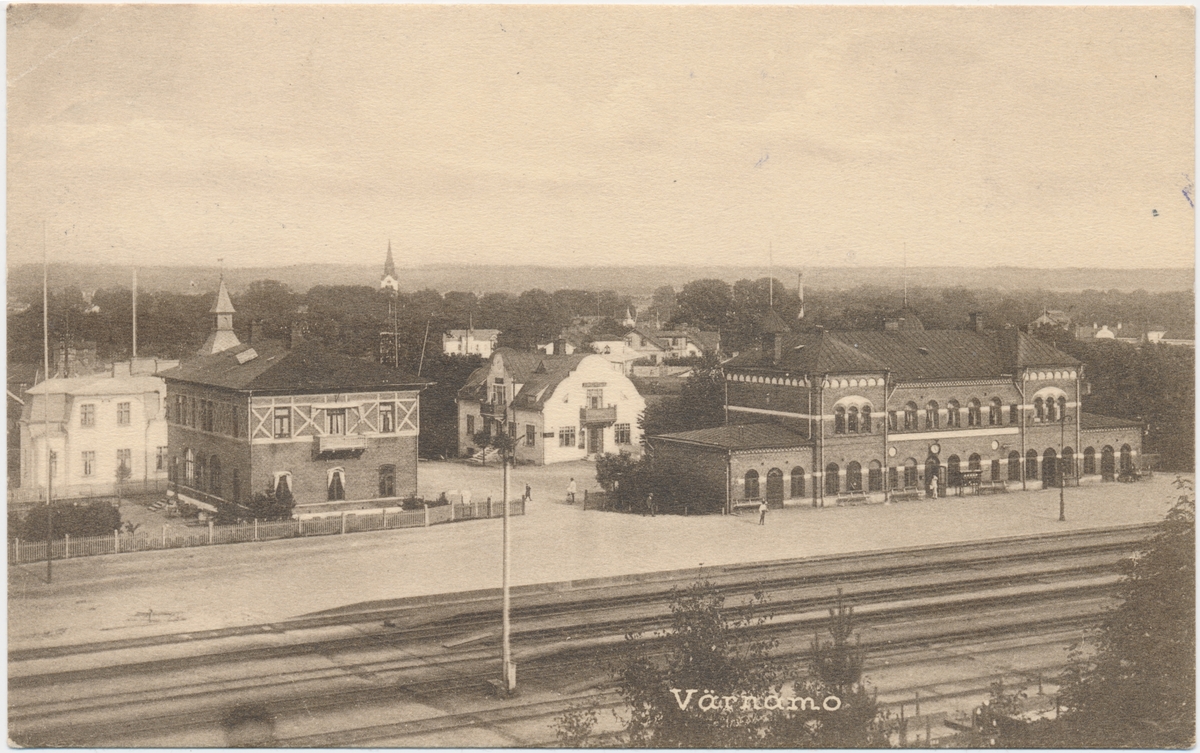 Värnamo station. Halmstad-Nässjö Järnväg, HNJ. Första stationshuset byggdes 1877 och revs 1995. för att det stod i vägen för en planerad vägkorsning. Första lokstallet byggdes 1875 men revs 1894 och ett nytt byggdes på annan plats på bangården. Ett nytt stationshus byggdes 1899 av Skånes-Smålands Järnväg, SSJ men byggnaden användes aldrig som järnvägsstation då SSj och HNJ enades om att använda HNJ station. 1902 byggdes ett nytt gemensamt stationshus vid godsmagasinet. 1903 anslöts Borås- Alvesta, BAJ hit och då byggdes ett nytt godsmagasin som bekostades av BAJ. Detta magasin tillbyggdes 1918 och 1935. HNJs gamla stationshus flyttades 1902 och blev bostads- och överliggningshus.