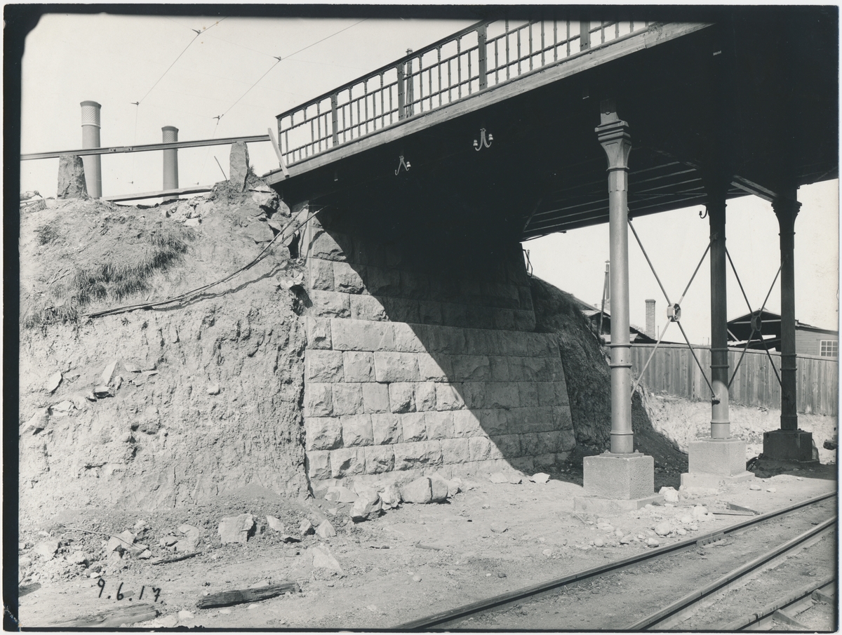 Värtan. Spårvägsbron efter ombyggnaden.Statens Järnvägar, SJ. Banan öppnades 1882. Provelektrifiering genomfördes1905 men den lades ner. 1940 elektrifierades banan slutgitligt.