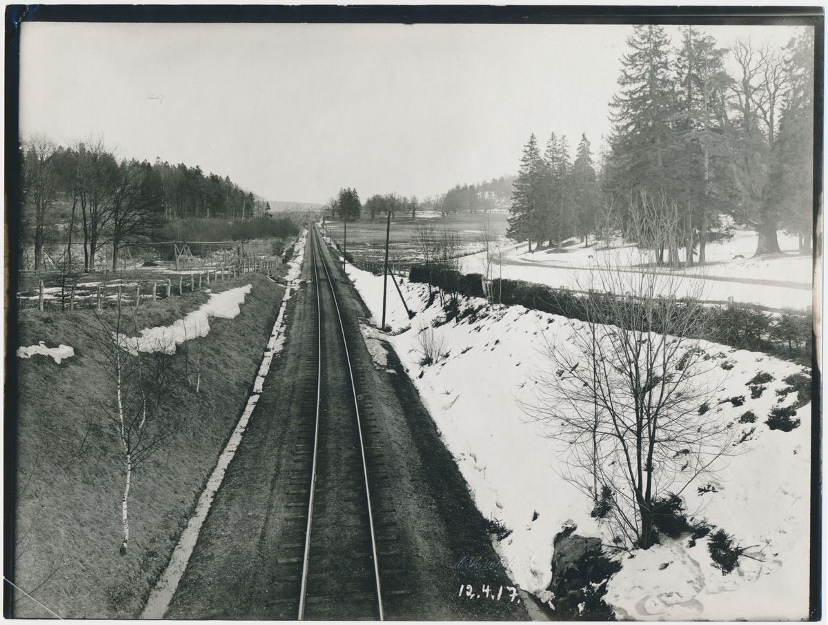 Värtan. Före ombyggnaden.Statens Järnvägar, SJ. Banan öppnades 1882. Provelektrifiering genomfördes1905 men den lades ner. 1940 elektrifierades banan slutgitligt.