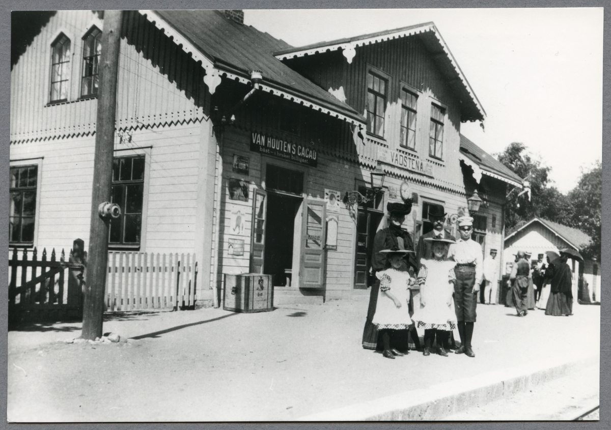 Okänd familj framför stationshuset i Vadstena.