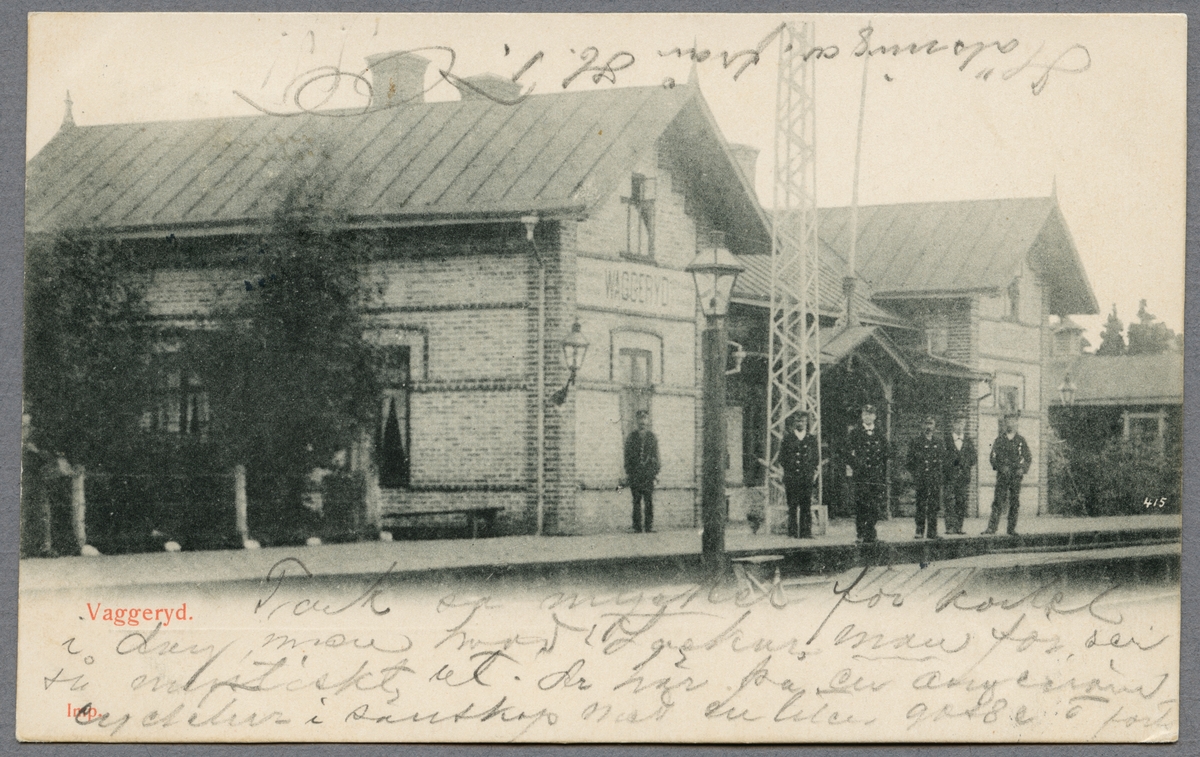 Personalen uppställd framför stationshuset i Vaggeryd.