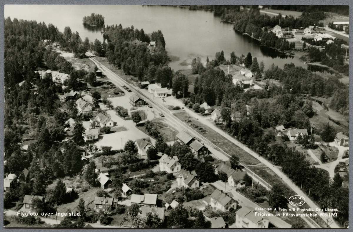 Flygbild över Ingelstad med station och Långasjö i bild.