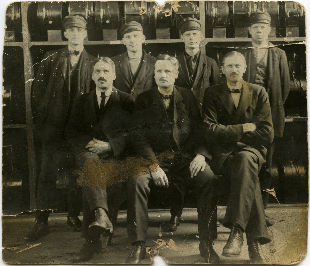 Sittande: Förrådsvakt Gustafsson, Förrådsförman Abrahamsson och Förrådsvakt Ohlsson.