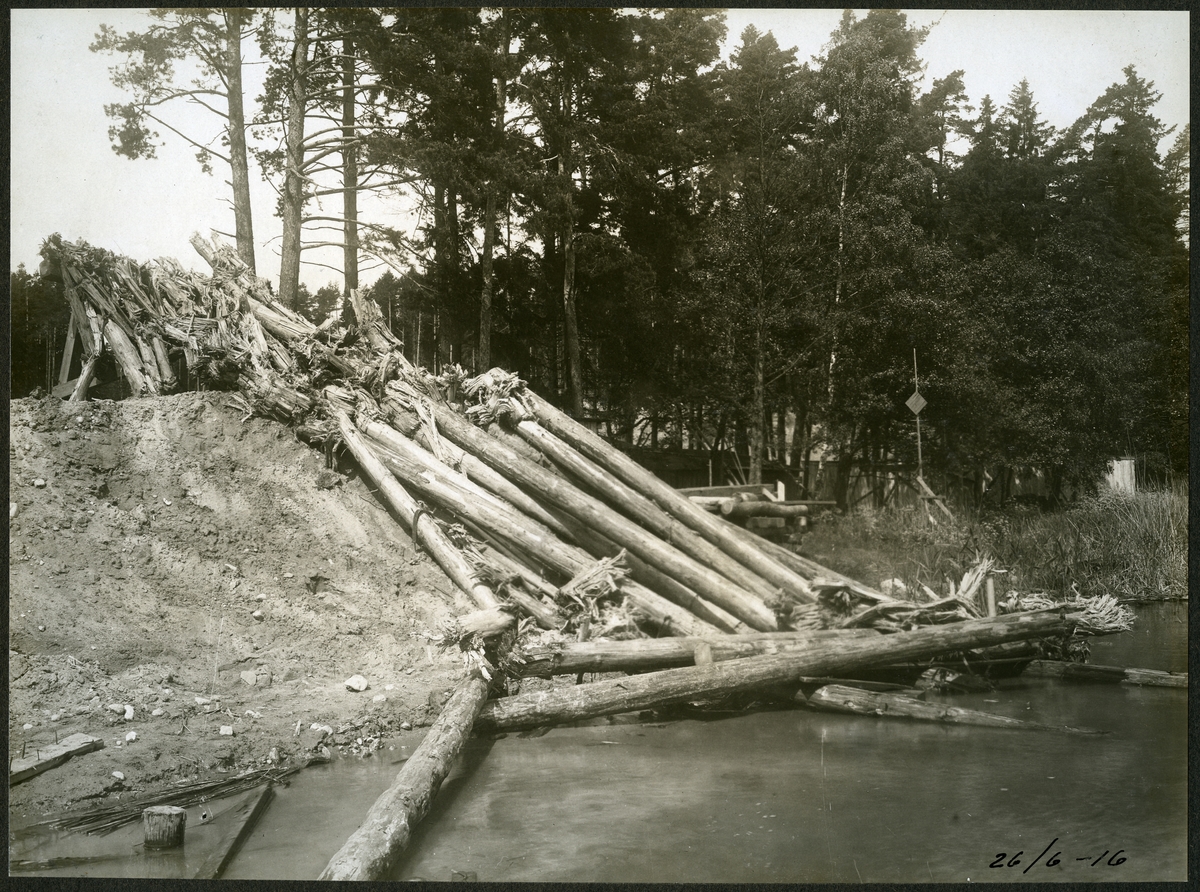Plålar som används vid brobygget för dubbelspåret över kanalen mellan Rönninge - Ström.