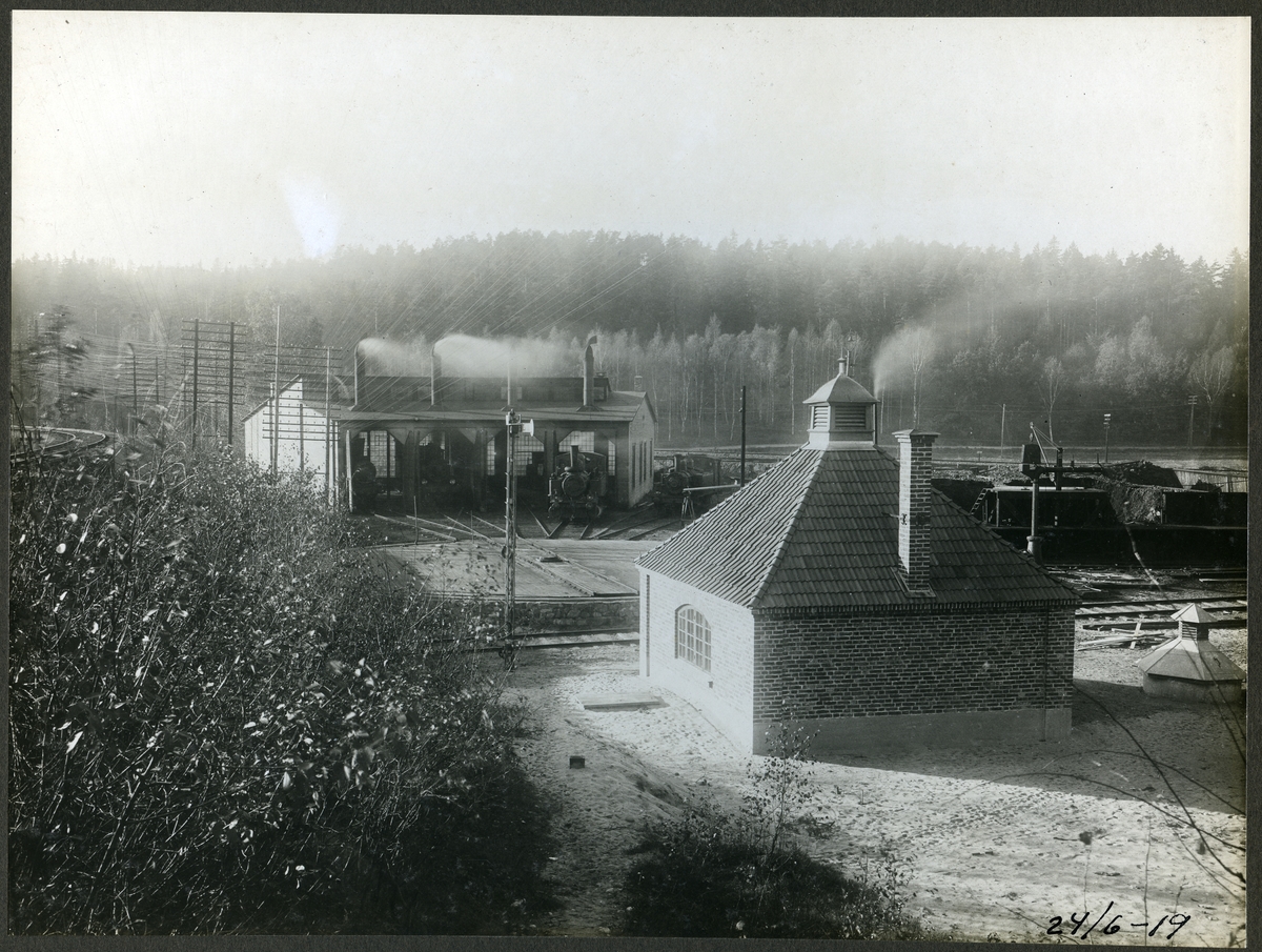 På bilden syns bland annat ångloket SJ VKBi 502 vid Södertälje. Södertälje Södra Pumpstation och lokstall
