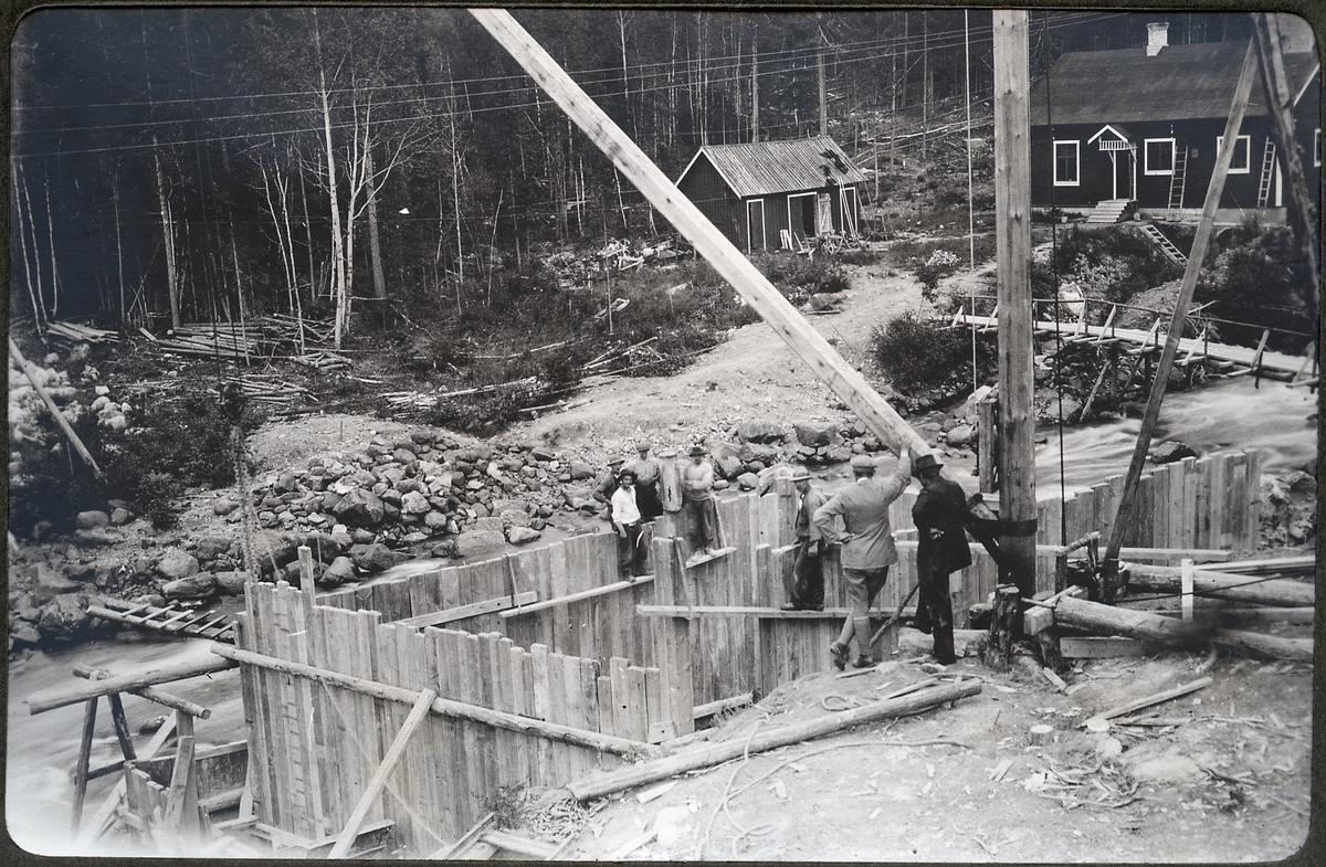 Spåntning för östra landfästet vid brobygget över Hjuksån.