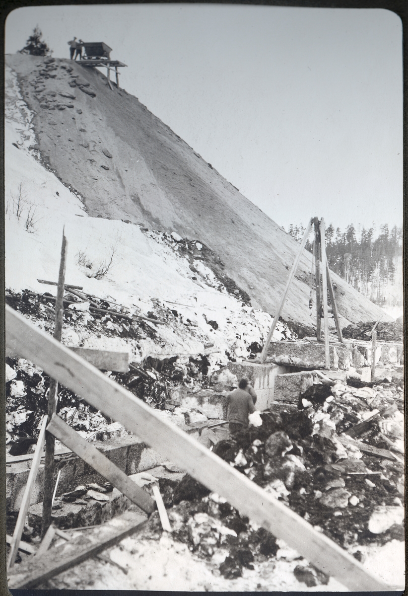 Bankfyllnad vid trumbygget vid Gladabäcken, Gladaberg.