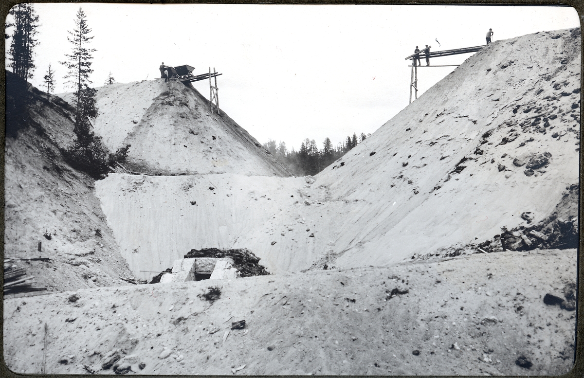 Bankfyllnad vid trumbygget vid Gladabäcken, Gladaberg.