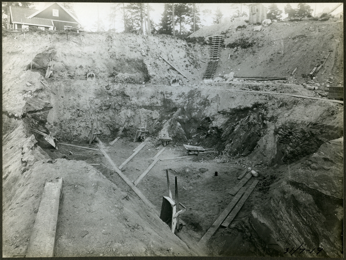Titel: Markbygge vid brobygget för dubbelspåret över kanalen mellan Rönninge - Ström.