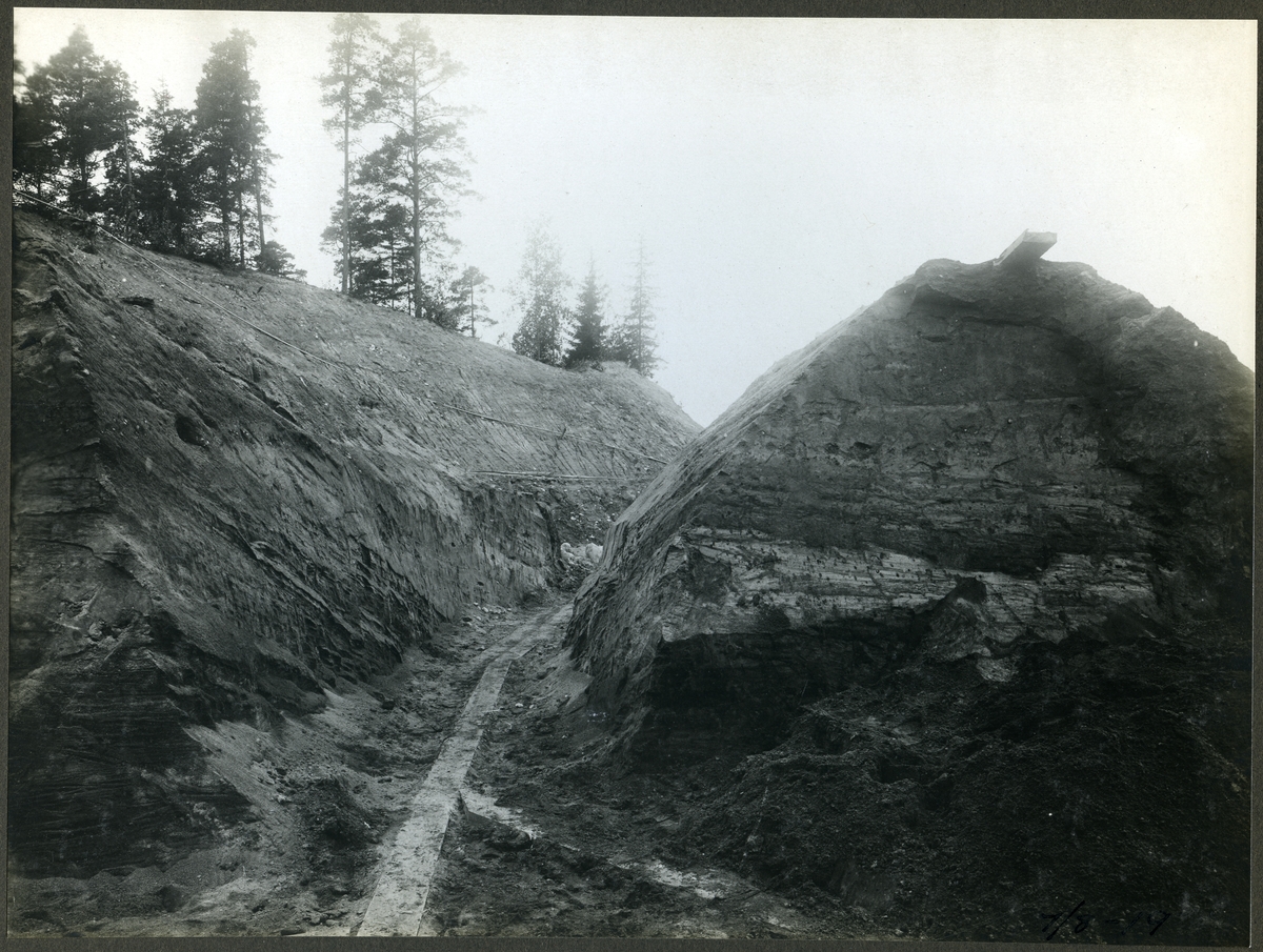 Vy intill brobygge för dubbelspåret över kanalen mellan Rönninge - Ström.