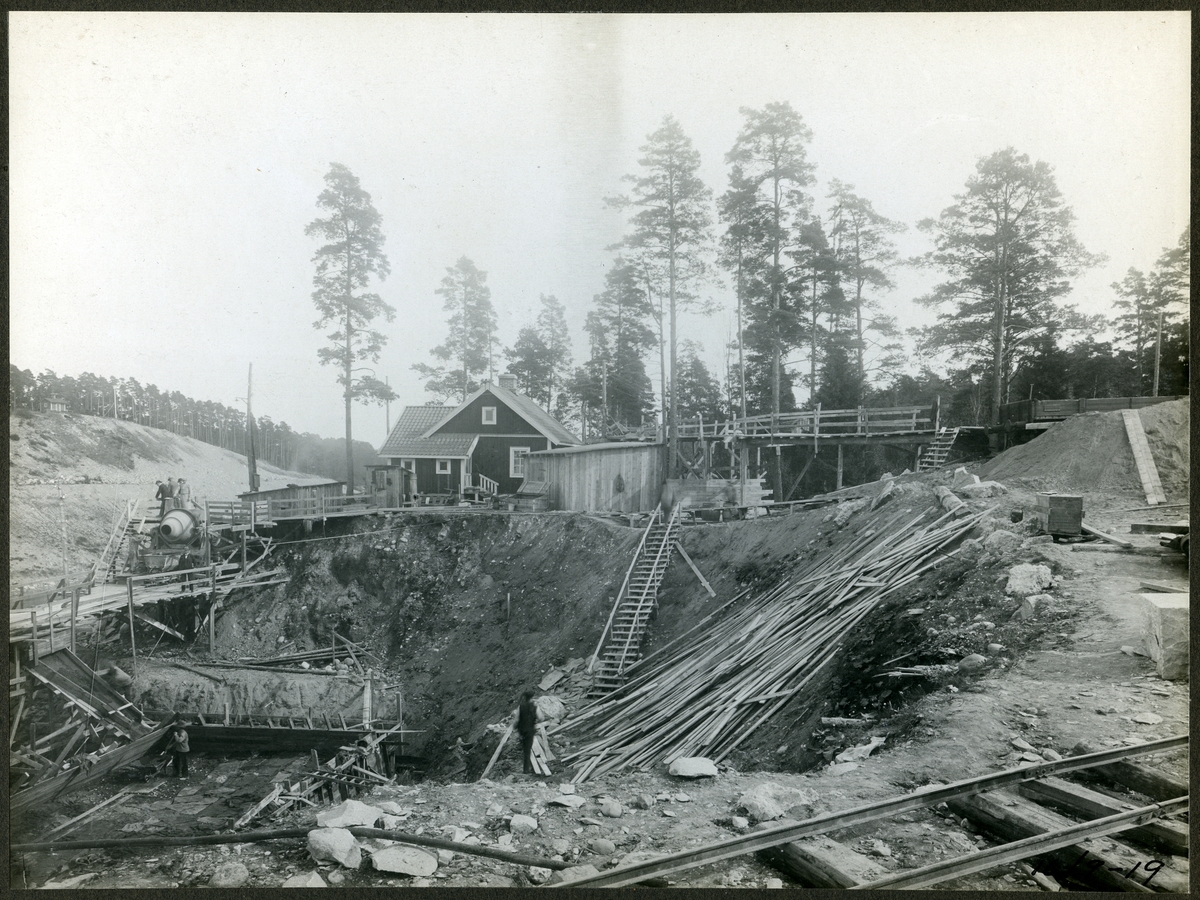 Vy intill brobygget för dubbelspåret över kanalen mellan Rönninge - Ström.
