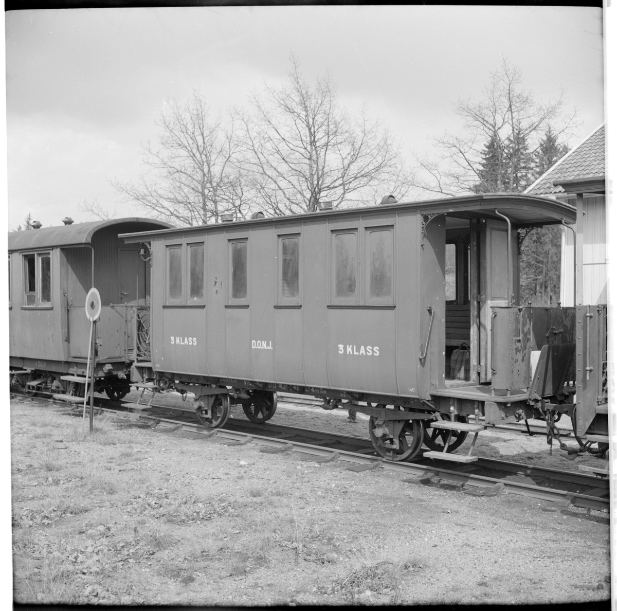 Dala - Ockelbo - Norrsundet Järnväg, DONJ 140 3:e klass vagn vid stationshuset i Vintjern.