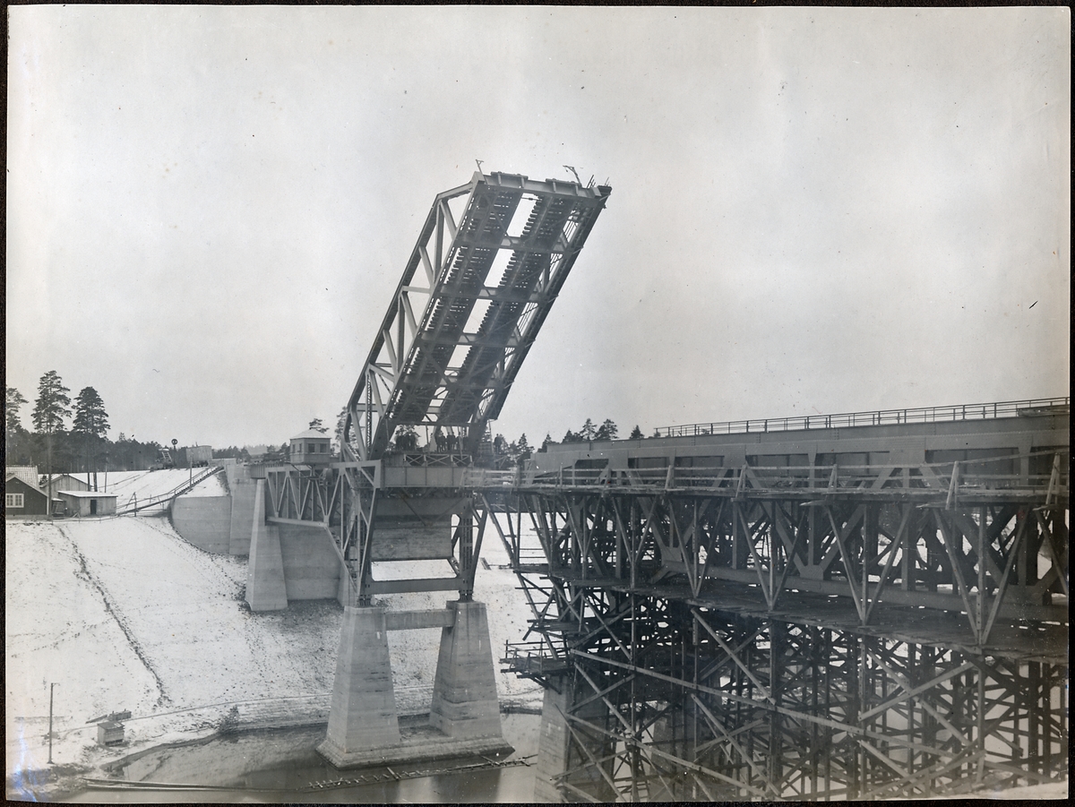 Färdigställande av klaffbron över Södertälje kanal.