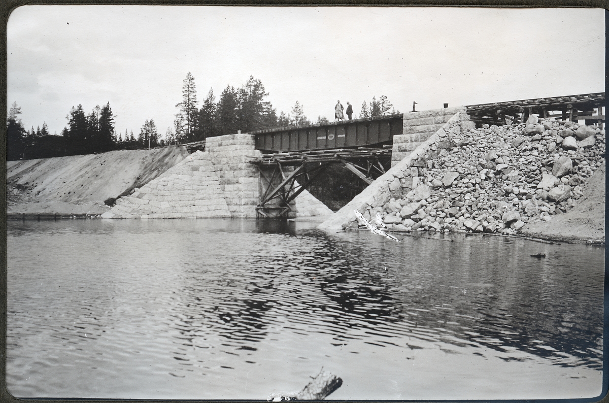 Stenfyllning bakom landfästen vid brobygget över Maltån.