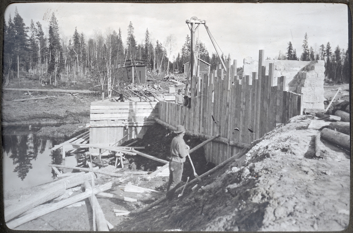 Spåntning för gamla åfåran vid brobygget över Maltån.