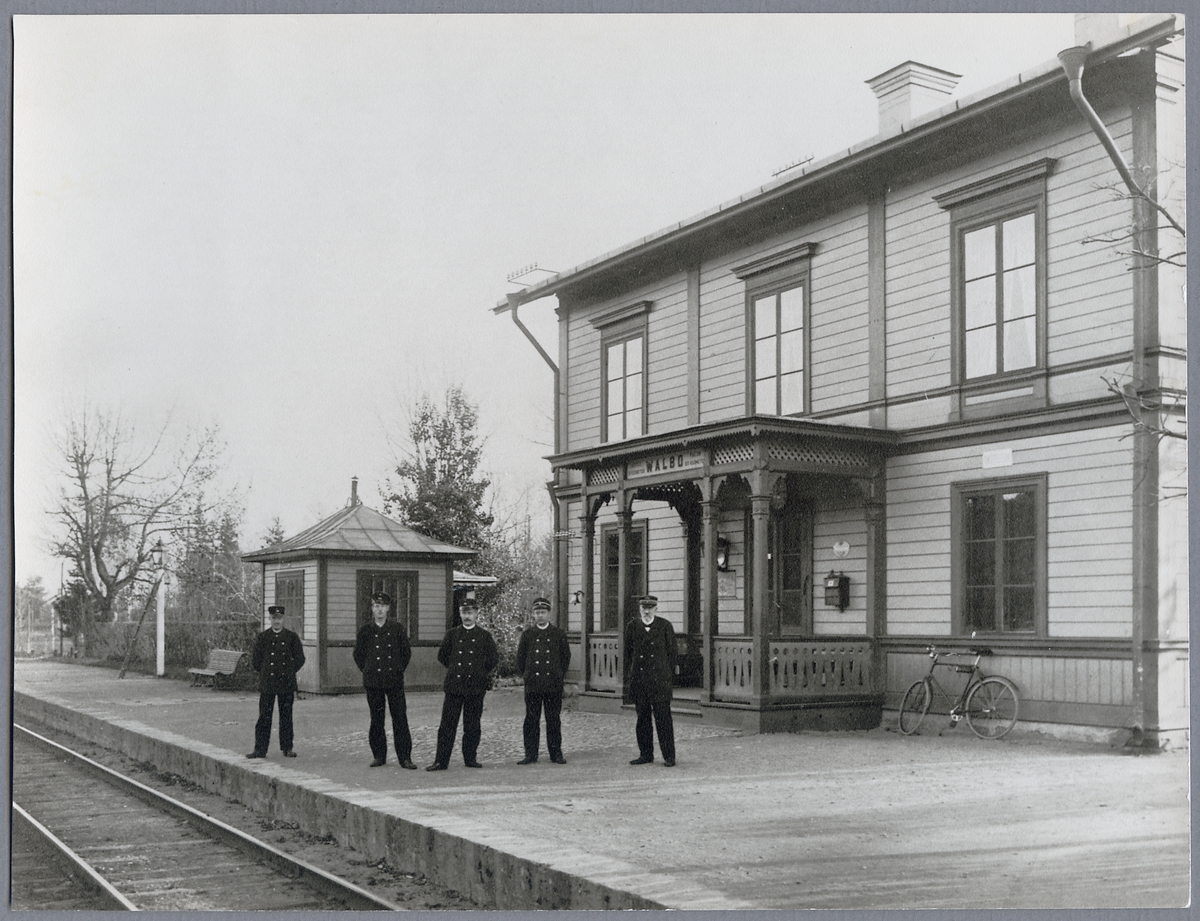 Valbo station år 1906. I bakgrunden syns en stege rest mot lyktstolpen. Lyktan tändes för hand.