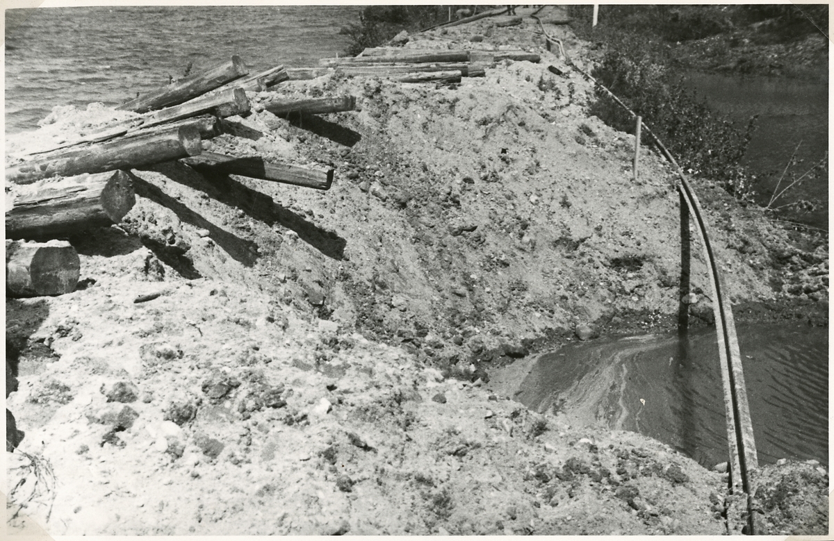 Bombningen vid Svartälvs Järnväg. Efter 100 kg:s bomb i kanten av banvallen.
