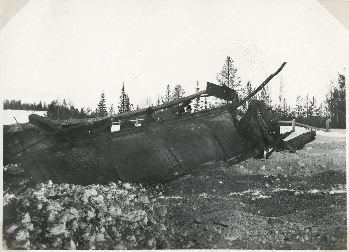 Bombning av plåtbalksbro i Ålså. Efter 250 kg:s bomb.