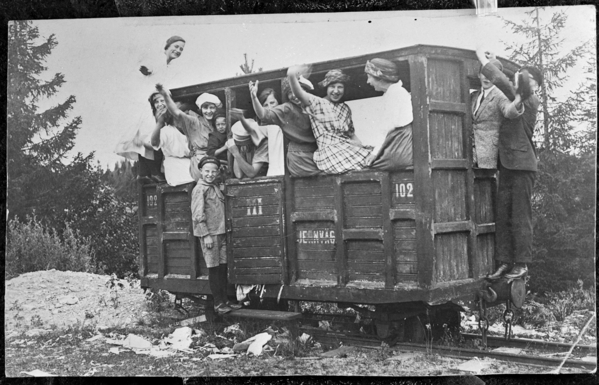 Kosta - Lessebo Järnväg, KLJ personvagn 102 väggarnas överdel har tagits bort och användes som musikvagn av barn till musikkår.