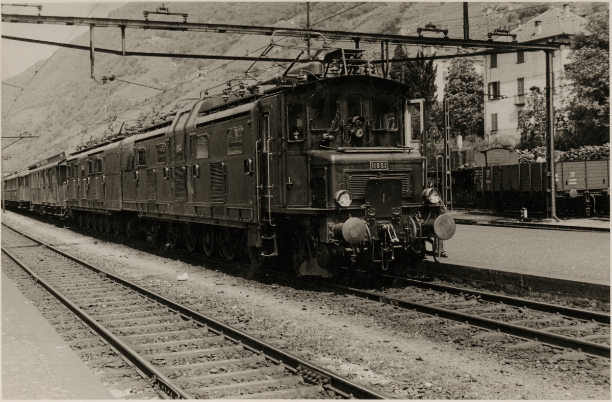 Titel: Persontåg på bangården. Loket har nummer 118 51.