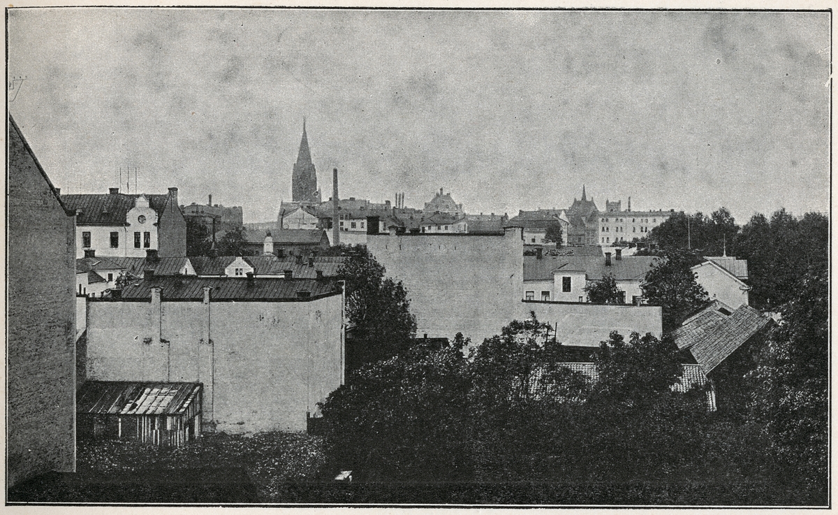 Örebro, utsikt västerut från tornet på gården nr. 36 och 38 Engelbrektsgatan.