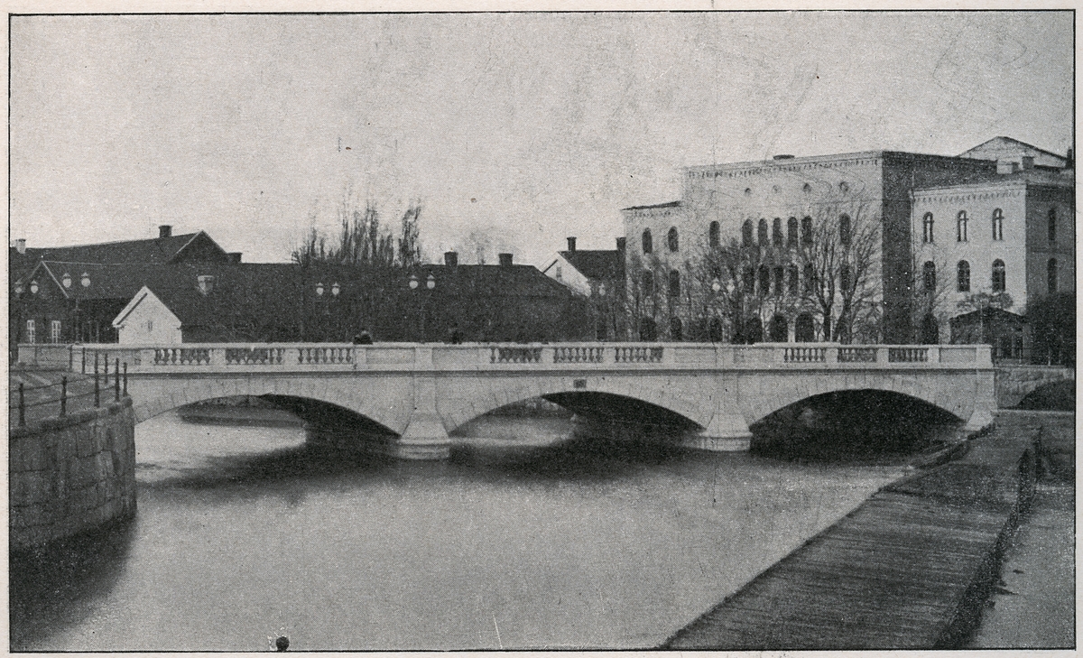 Örebro, nya Storbron med omgivningar på norra Svartåstranden med teatern i bakgrunden.