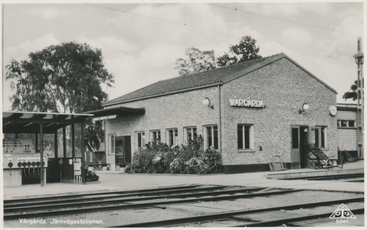 Vårgårda station. Statens Järnvägar, SJ. Banan öppnades 1857, elektrifiering 1926 och fick dubbelspår 1954.