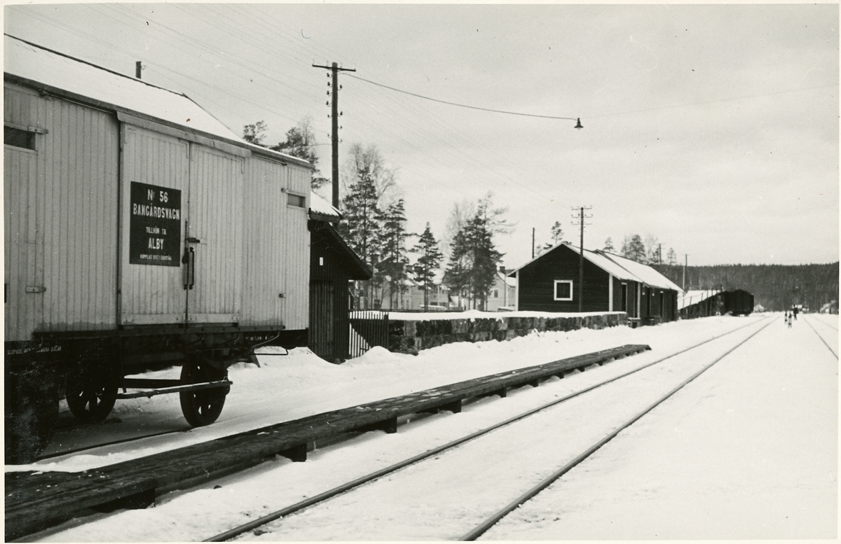 Alby stationsmiljö. Bangårdsvagn N 56, tillhör Alby.