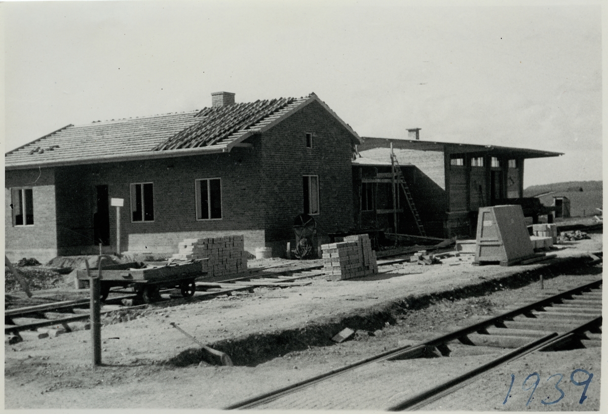 Byggnationen av det nya stationshuset i Anderslöv, maj 1949.