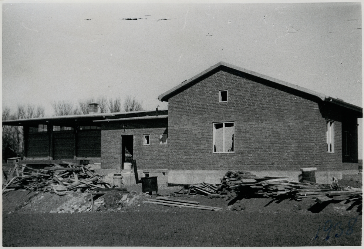 Byggnationen av det nya stationshuset i Anderslöv, maj 1949.
