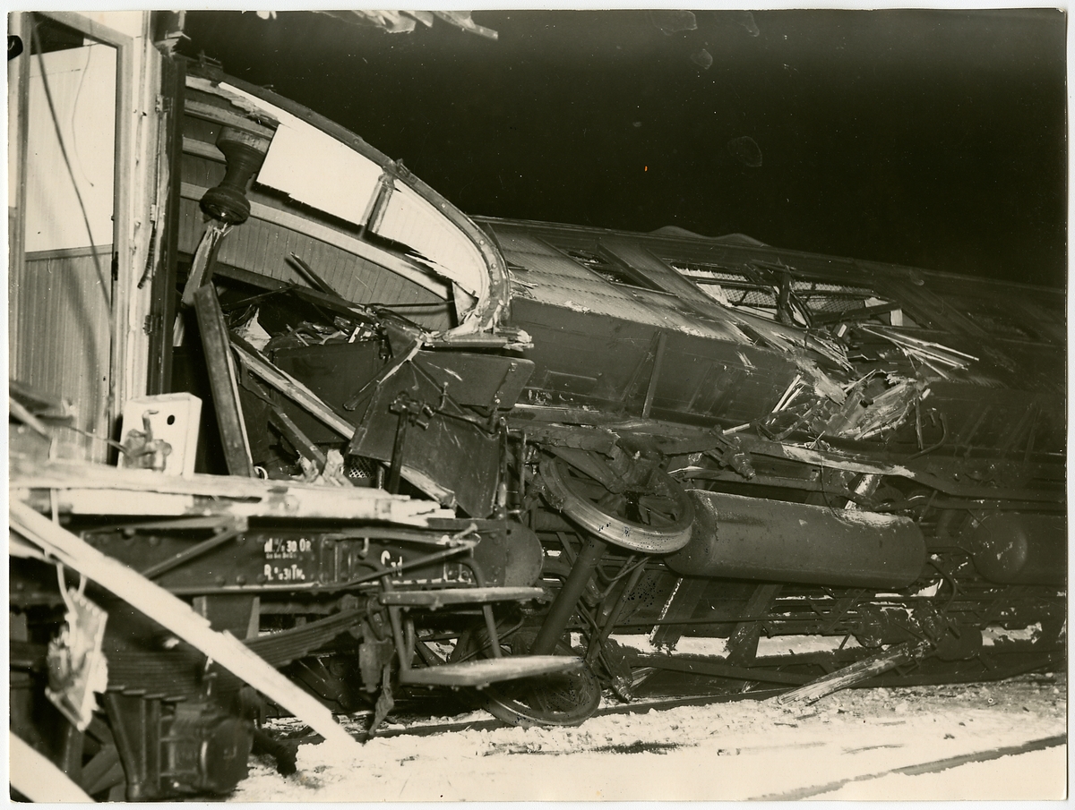 Ett par Boggievagnar vid sammanstötningen med med de urspårade godsfinkorna.