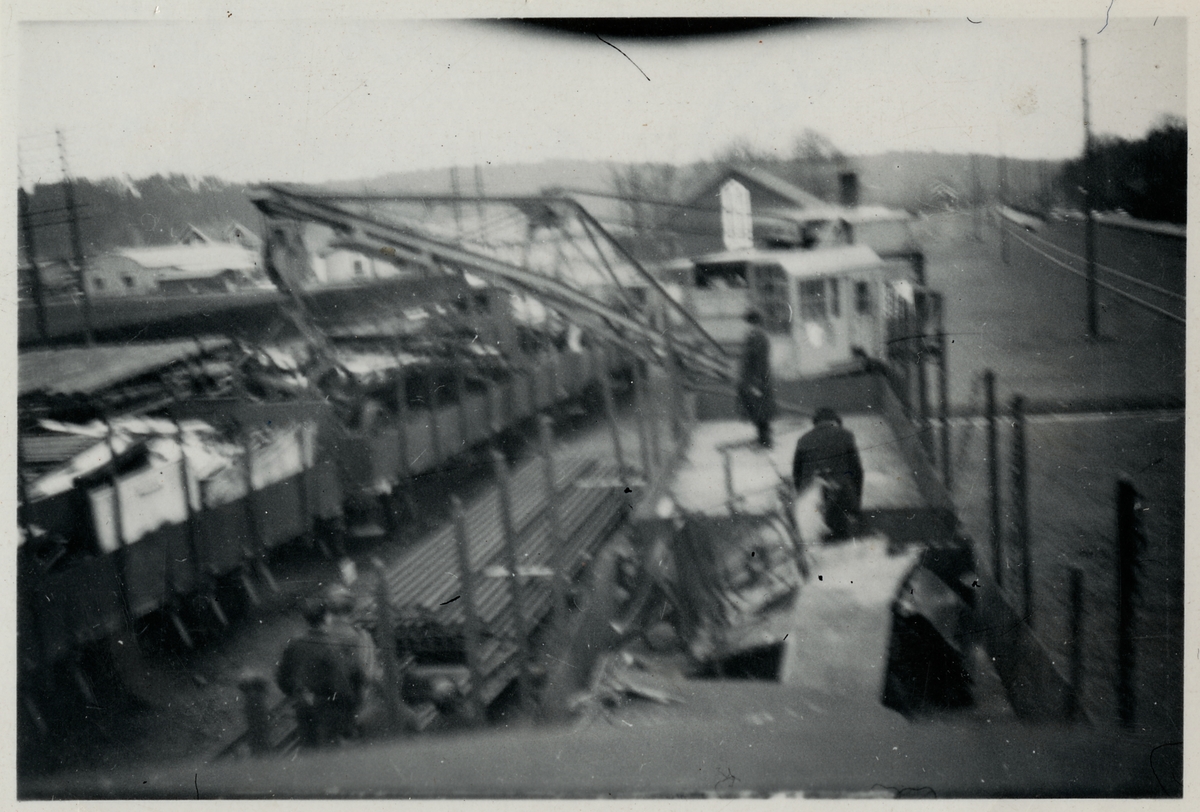 Lastning av skrot med ångkran vid Märsta station från olyckan i Odensala