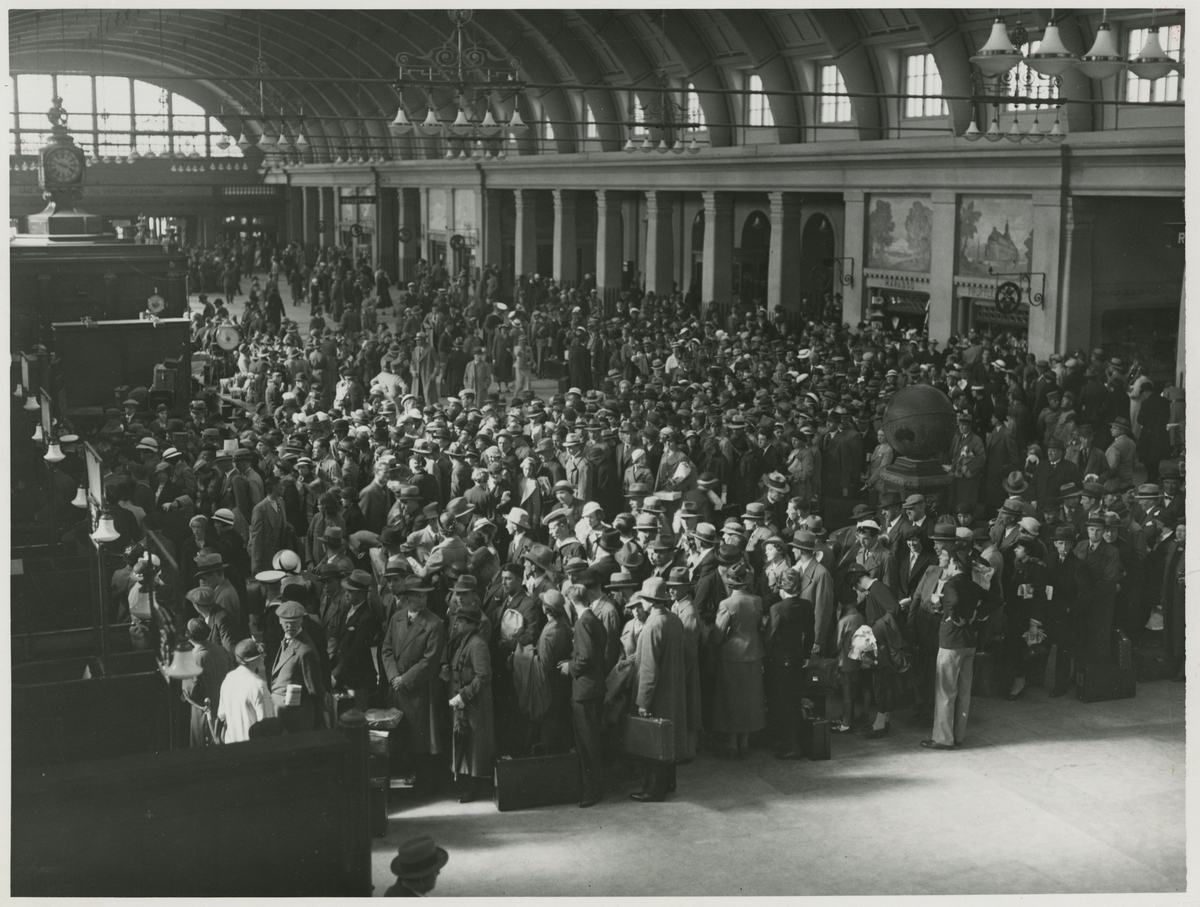 Folksamling i vänthallen på Stockholms Centralstation.