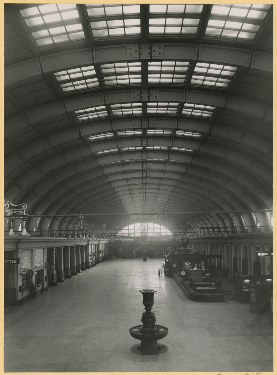 Taklanterniner släpper in dagsljuset i vänthallen, Stockholms Centralstation.