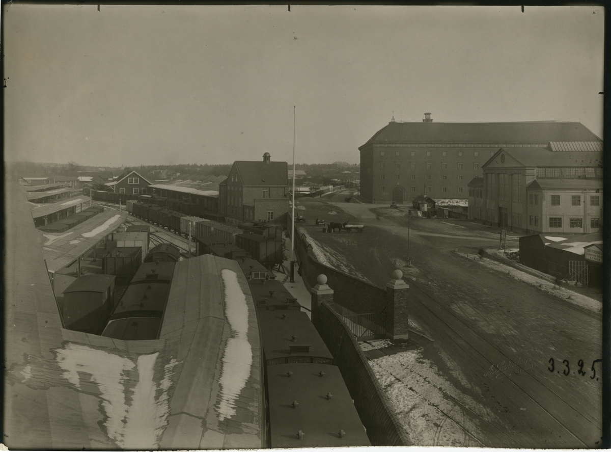 Vy över lastkajerna vid magasin för avgående gods, Stockholm Norra.