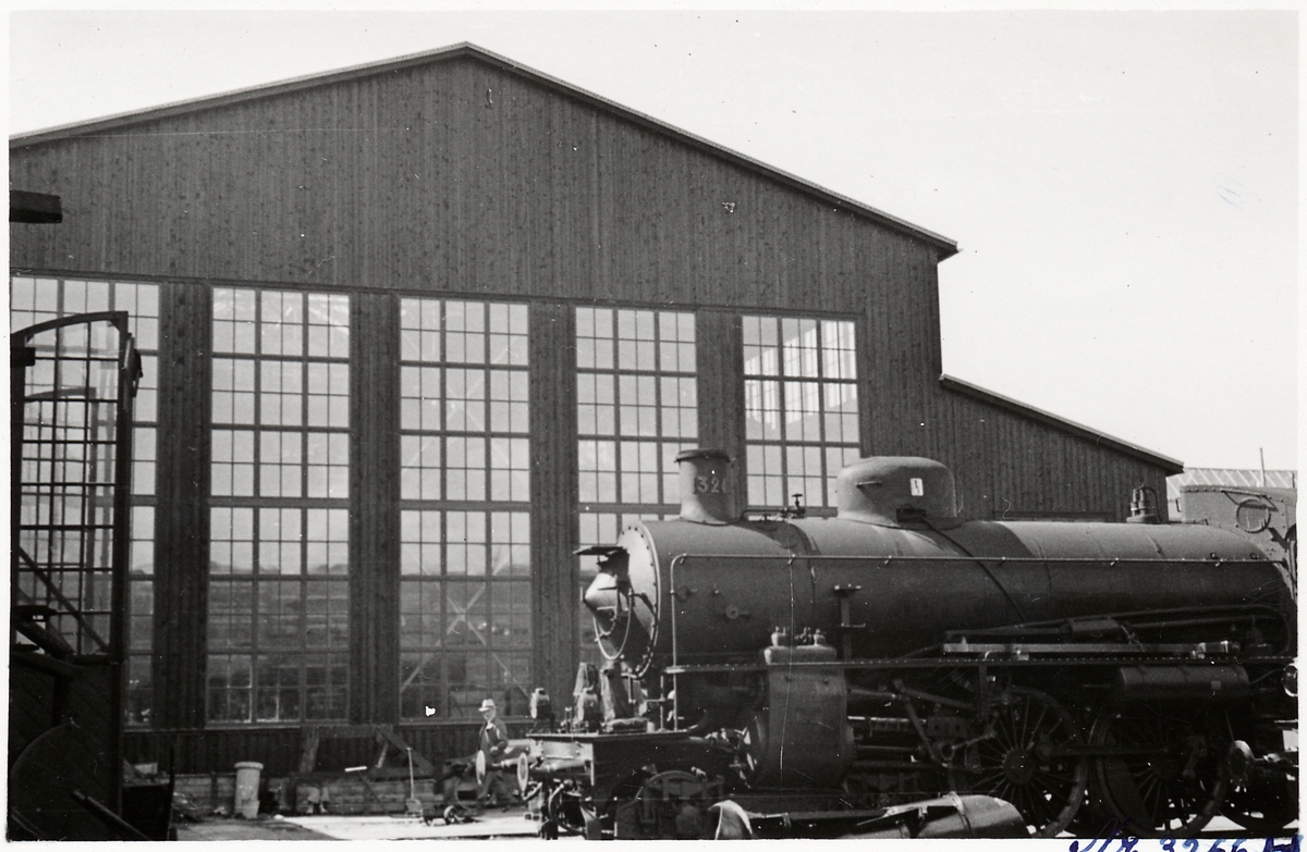 Tillbyggnaden av lokverkstaden vid Örebro centralverkstad. SJ B 1324.