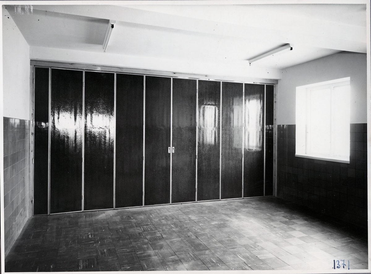 Ystad lokstation, expeditionsbyggnaden. Rum 51, dagrum för lokpersonal. Hopskjutbart väggparti mot rum 52, undervisningsrummet.