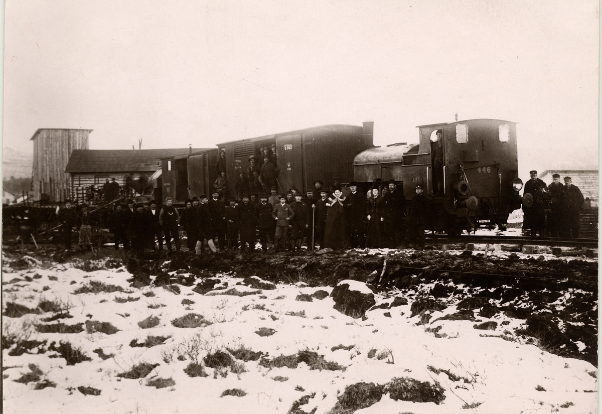 Ångtåget SJ Å 446 med resande och personal.