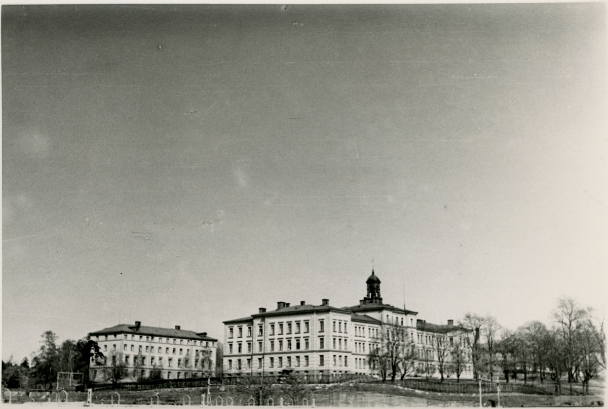Tomteboda. Statens Järnvägar, SJ. Blindinstitutet sett från bangården.