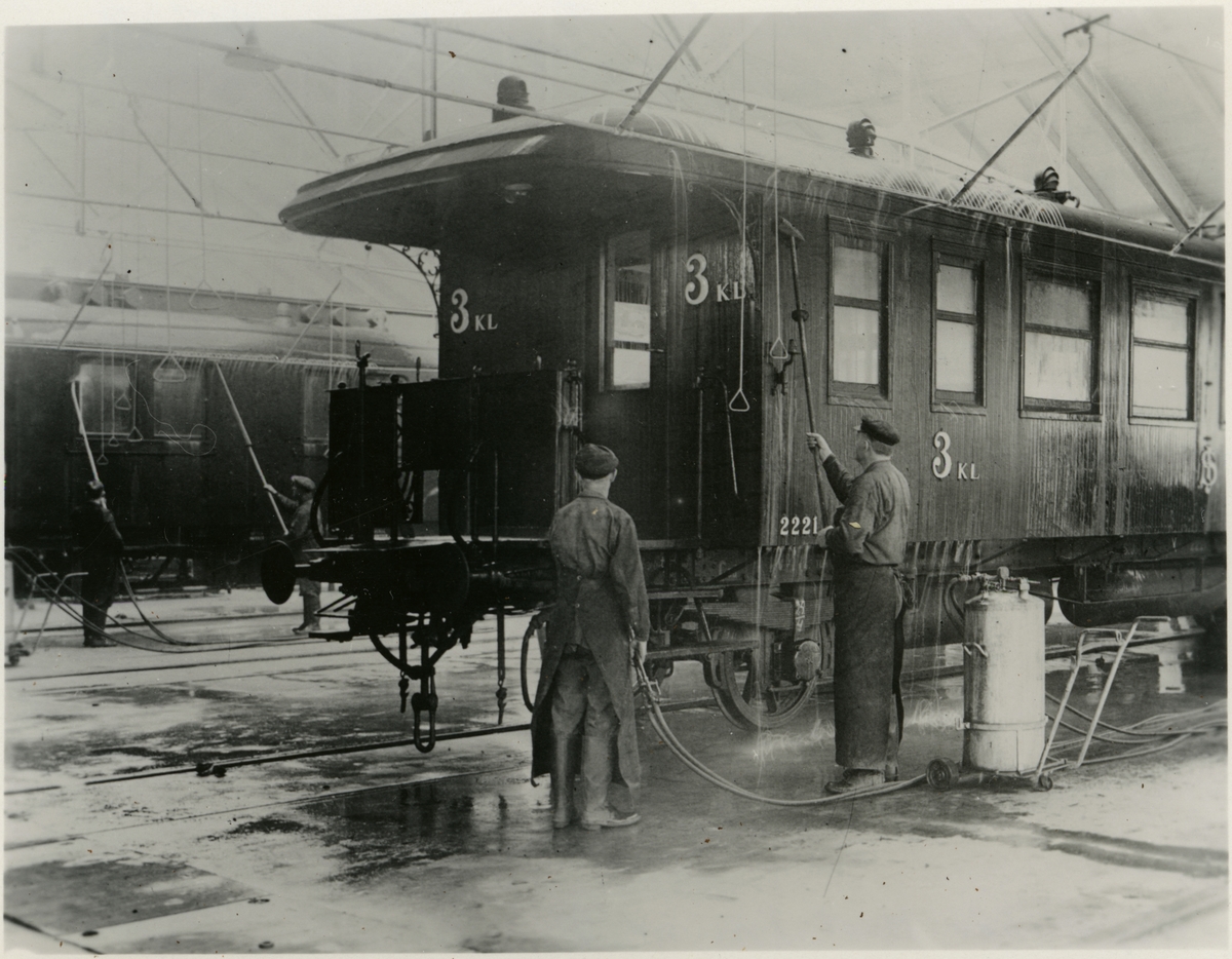Tomteboda. Statens Järnvägar, SJ. Huvudverkstaden. Vid utarbetad metod för tvättning av vagnar. Statens Järnvägar, SJ C3d 2221.
