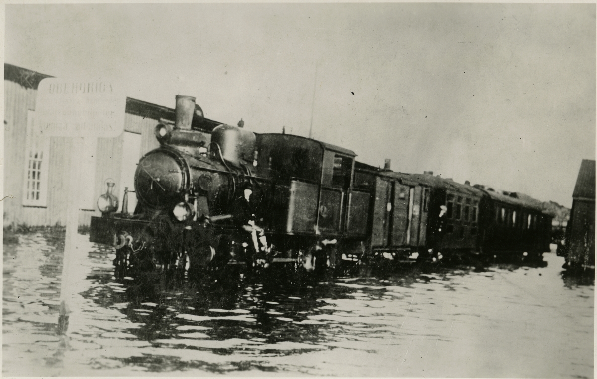 Översvämning i Uddevalla. ULB lok 6, Uddevalla - Lelångenbanan.
