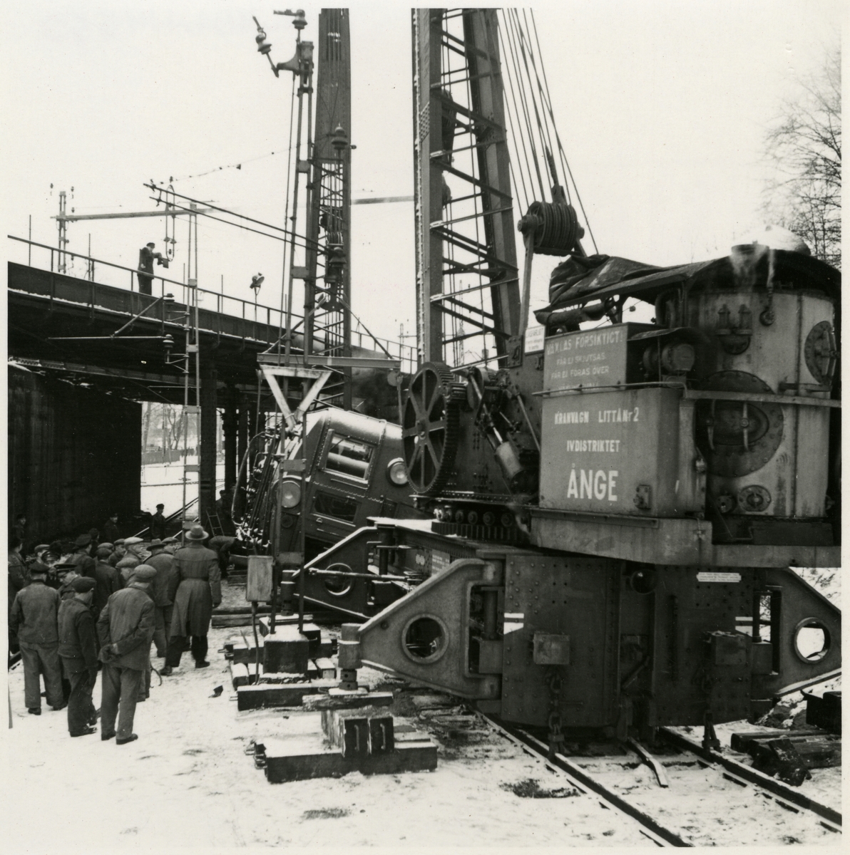 Urspårning av lok och kranarbete med ångkran "Ånge" och "Nässjö" vid Tomteboda.