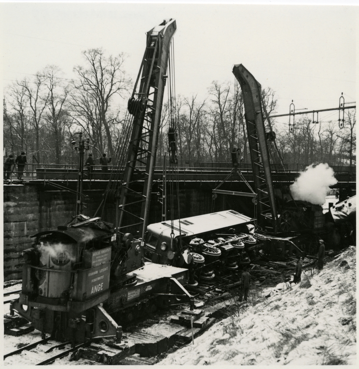 Urspårning av lok och kranarbete med ångkran "Ånge" och "Nässjö" vid Tomteboda.