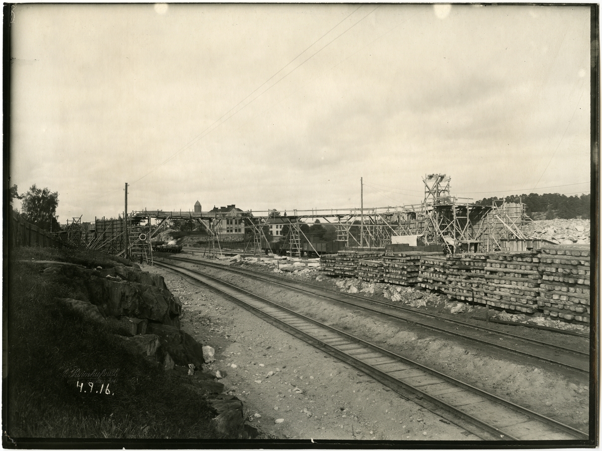 Stockholm Västerås Bergslagen, SVB viadukten vid Tomteboda gjutning av landfästena. Linjen Tomteboda - Hagalund.