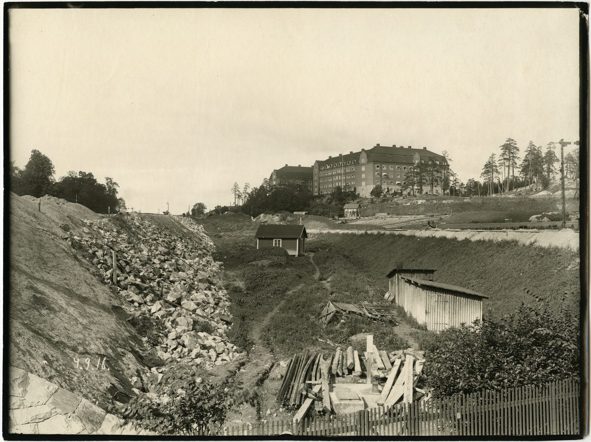 Till vänster utfyllning för banken och till höger förbindelsespåret Karlberg - Tomteboda.