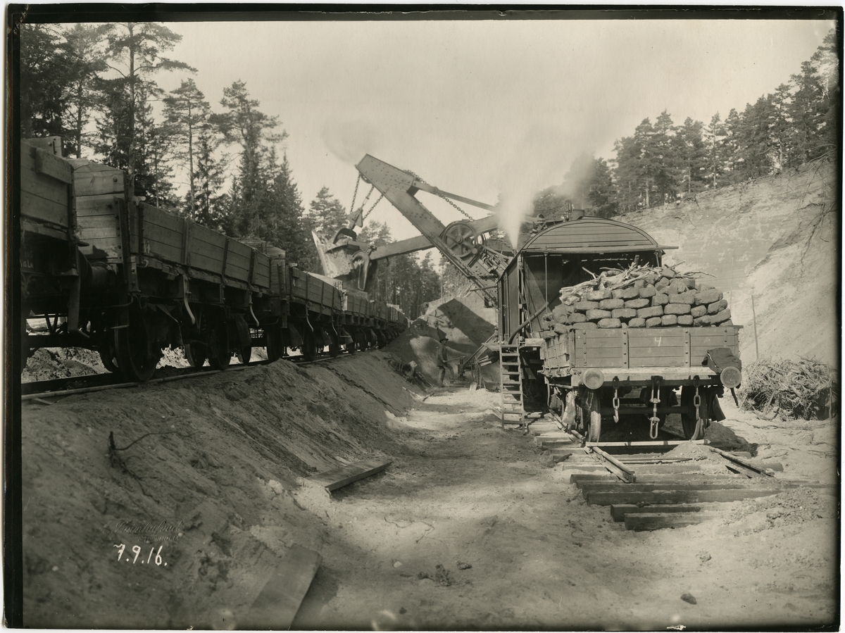 Lastning med ånggrävmaskin Statens Järnvägsbyggnader, SJB Q8 3 vid Tomteboda.