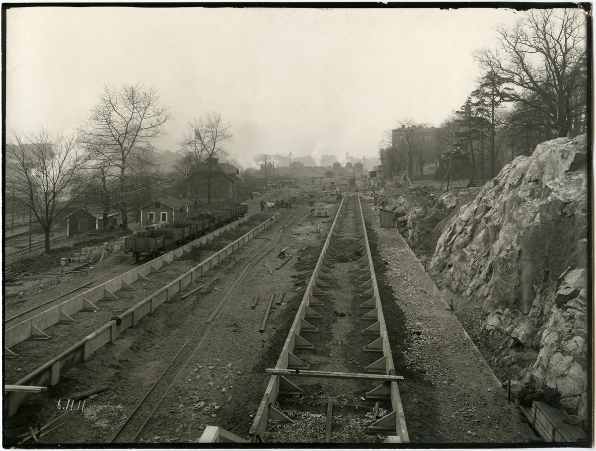 Läggning av plattformarna vid Tomteboda övre.